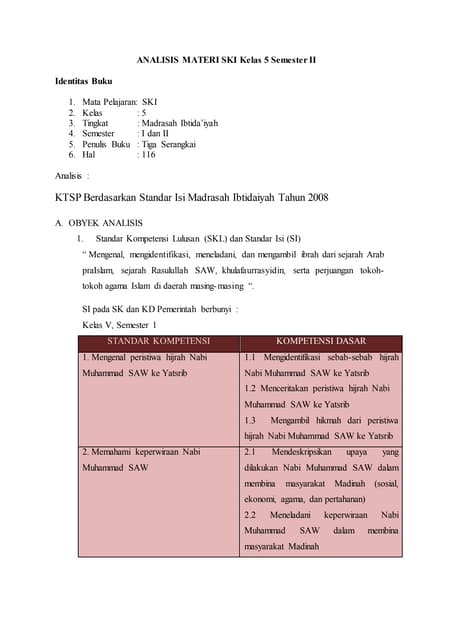 Analisis Materi Ski Kelas 5 Semester Ii