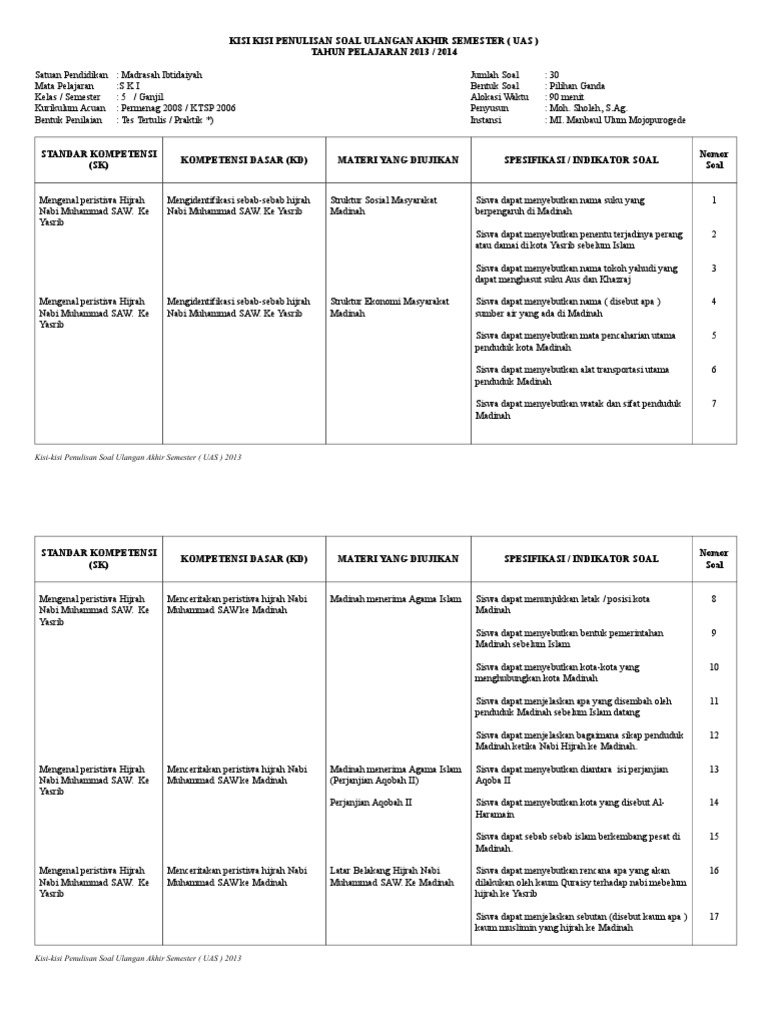 Atas kunjungannya Terima kasih semoga link download ini dapat membantu. 20191031 Demikian Latihan Soal PTSUTS SKI Kelas 5 Madrasah Ibtidaiyah Semester Ganjil Kurikulum 2013.